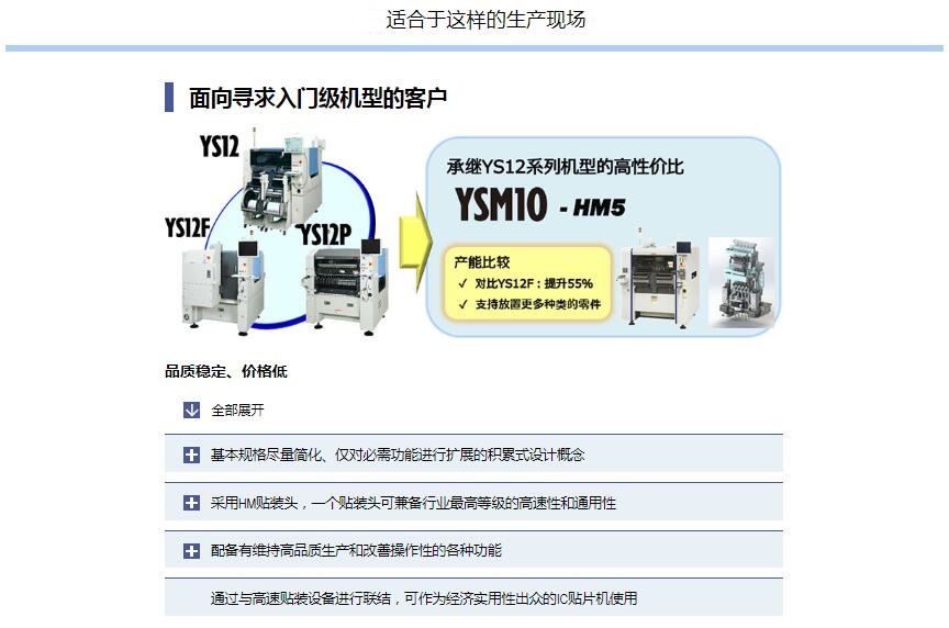 1.兼?zhèn)涓咚傩院屯ㄓ眯?、在同?jí)別機(jī)型中實(shí)現(xiàn)更高水平貼裝能力的YSM系列入門級(jí)貼片機(jī)。