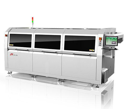 外形流線型設(shè)計(jì),內(nèi)部模塊化設(shè)計(jì),適合SMT及直插元件的無(wú)鉛焊接。 噴霧系統(tǒng)采用離心風(fēng)機(jī)上抽風(fēng),防止助焊劑滴到PCB上。 助焊劑緩沖罐感應(yīng)器外置,更加可靠耐用。 標(biāo)配冷風(fēng)刀,防止助焊劑霧氣向外擴(kuò)散,減少污染。 雙波控制采用無(wú)極變頻技術(shù),可獨(dú)立控制波峰高度。 1/4HP大功率波峰馬達(dá),更大波峰高度可達(dá)15mm。 具有超溫聲光…